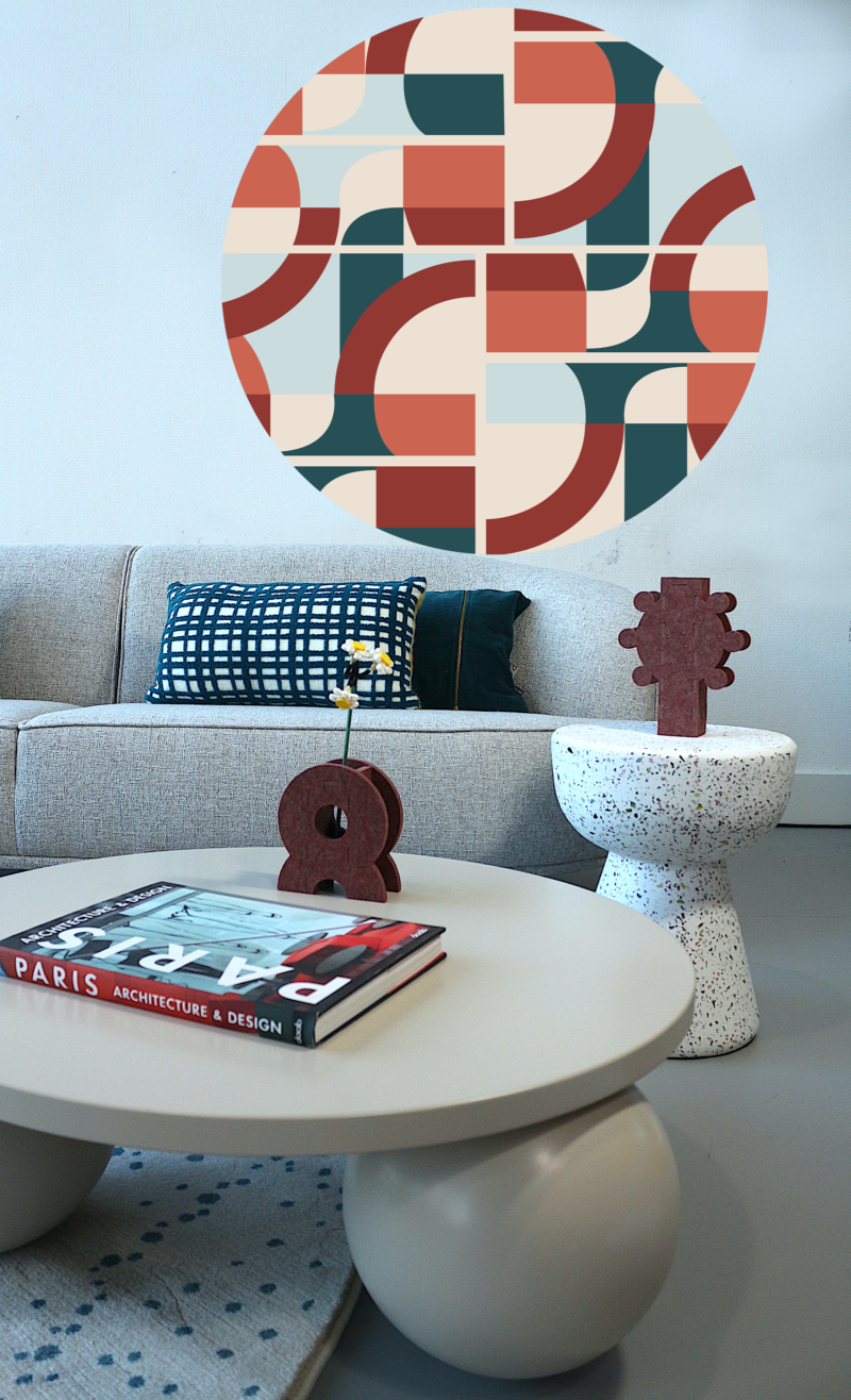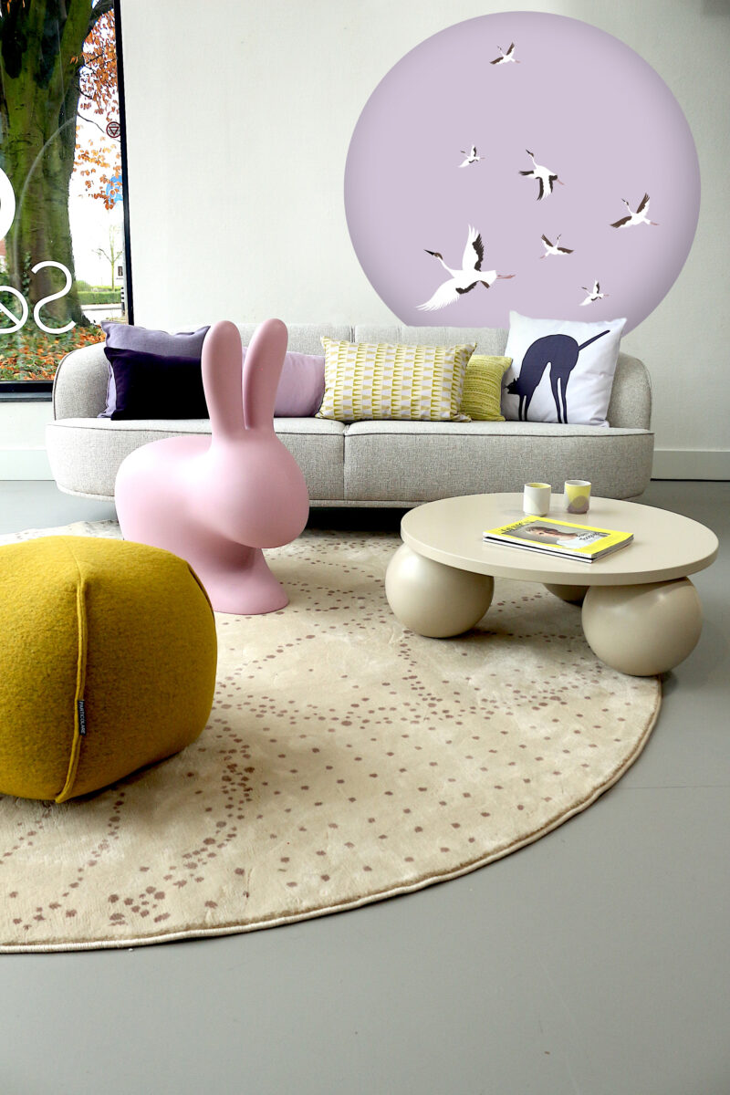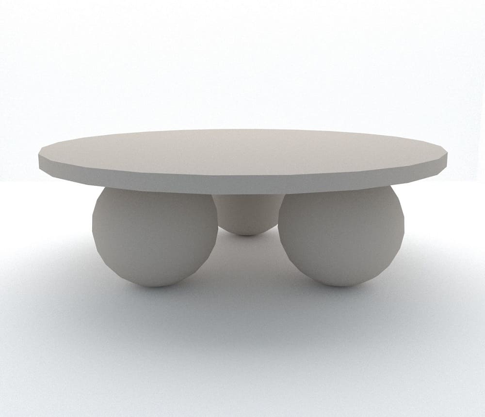 Het ronde tafelblad heeft een diameter van Ø80cm en is 3 cm dik. De hoogte van de tafel is 30cm. Het blad wordt gespoten in een matte lak in de kleur Sand. Het tafelblad staat op 3 bollen en elke bol heeft een diameter van 28cm. De 3 bollen zijn gemaakt van massief hout en worden tevens in dezelfde kleur ‘Sand’ gespoten als het tafelblad.