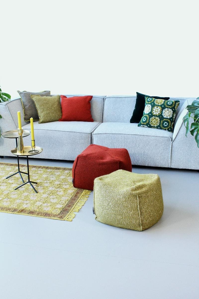 De vulling van de poef bestaat uit kleine piepschuimbolletjes. Dat maakt dat de poef heerlijk zacht aanvoelt en dat je er lekker met je benen in ploft. De poef is te verkrijgen in meer dan 15 verschillende kleuren, maar ook in 2 verschillende materialen waaronder gekookte wol en ribcord.
