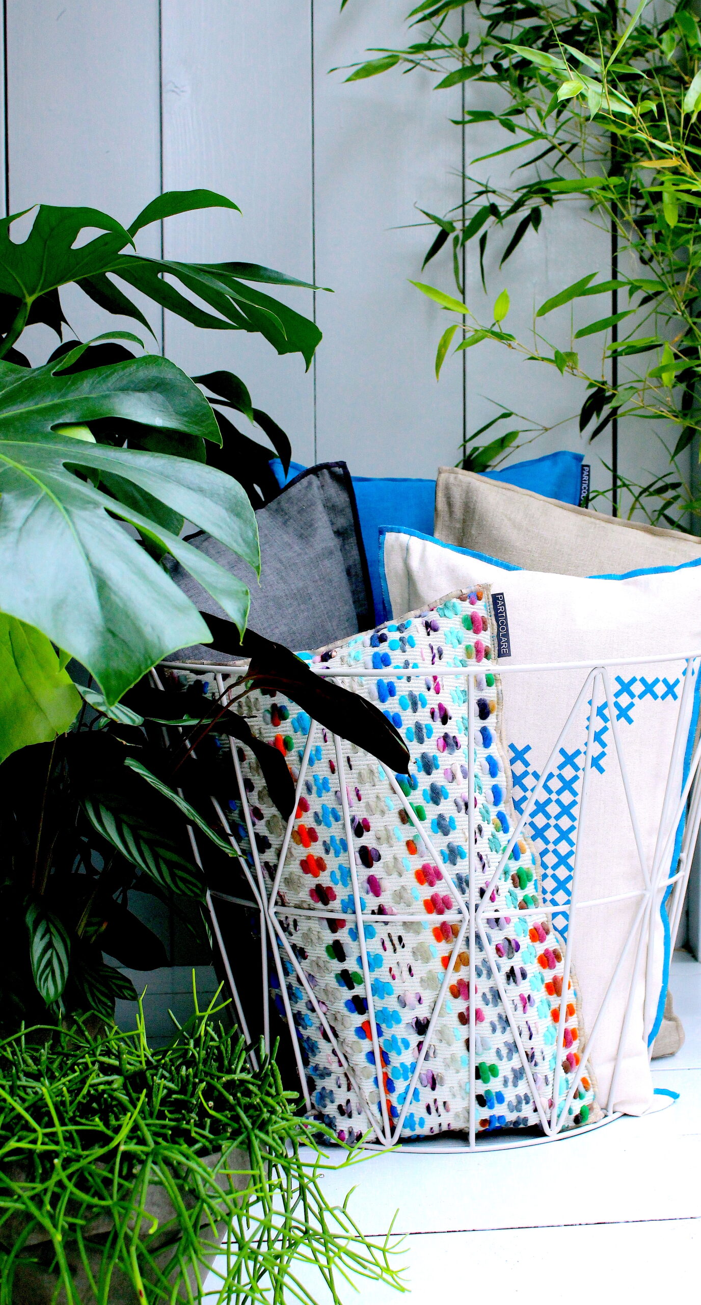 De stof van dit  kussen is met de hand geweven en ook het kussen zelf is met de hand gemaakt. Onze eigen stof ontwerpen kun je zien als een kunstwerkje op je bank. Je ziet dat deze stoffen uniek- en met de hand geweven zijn. Deze bijzondere stoffen worden normaliter gebruikt voor de Haute Couture. Wij zijn de enige op de hele wereld die van deze mooie stoffen kussens en poefs maken. Met dit kussen kun je je onderscheiden en heb je echt iets unieks op je bank liggen.